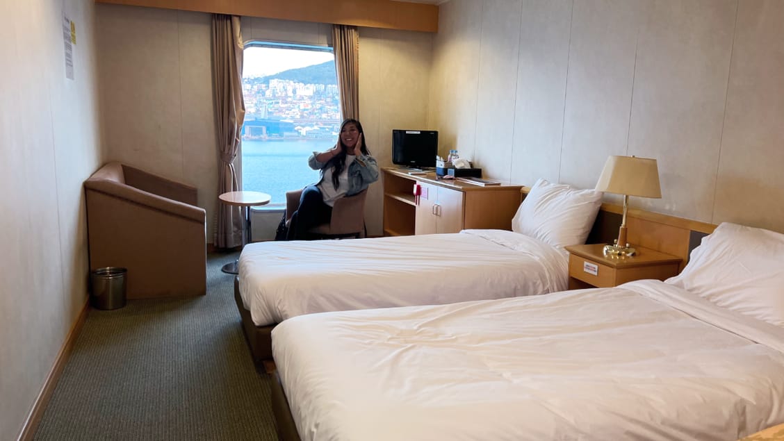 First of all, for about $50 per person, which is cheaper than the flight to the same destination, you can have your own massive private room with beds, your own sink, a sofa, and a spectacular view. It was the same, or much better, than most cruise ships.