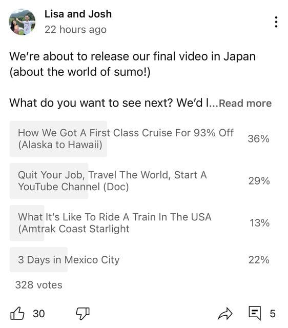 We also asked on YouTube and IG a more specific question - between these 4 video options, which one do you want to see? Here’s the results of that: