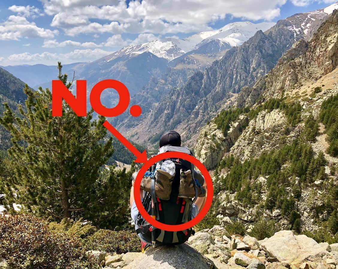I always saw backpackers with ludicrously large backpacks that had even-more-ludicrously large hiking boots tied to the back of them, and just assumed that was the right way to travel. I always assumed that I would use them, but never actually did. They just took up tons of room in my pack, added 10lbs of extra weight, and constantly got caught on everything.